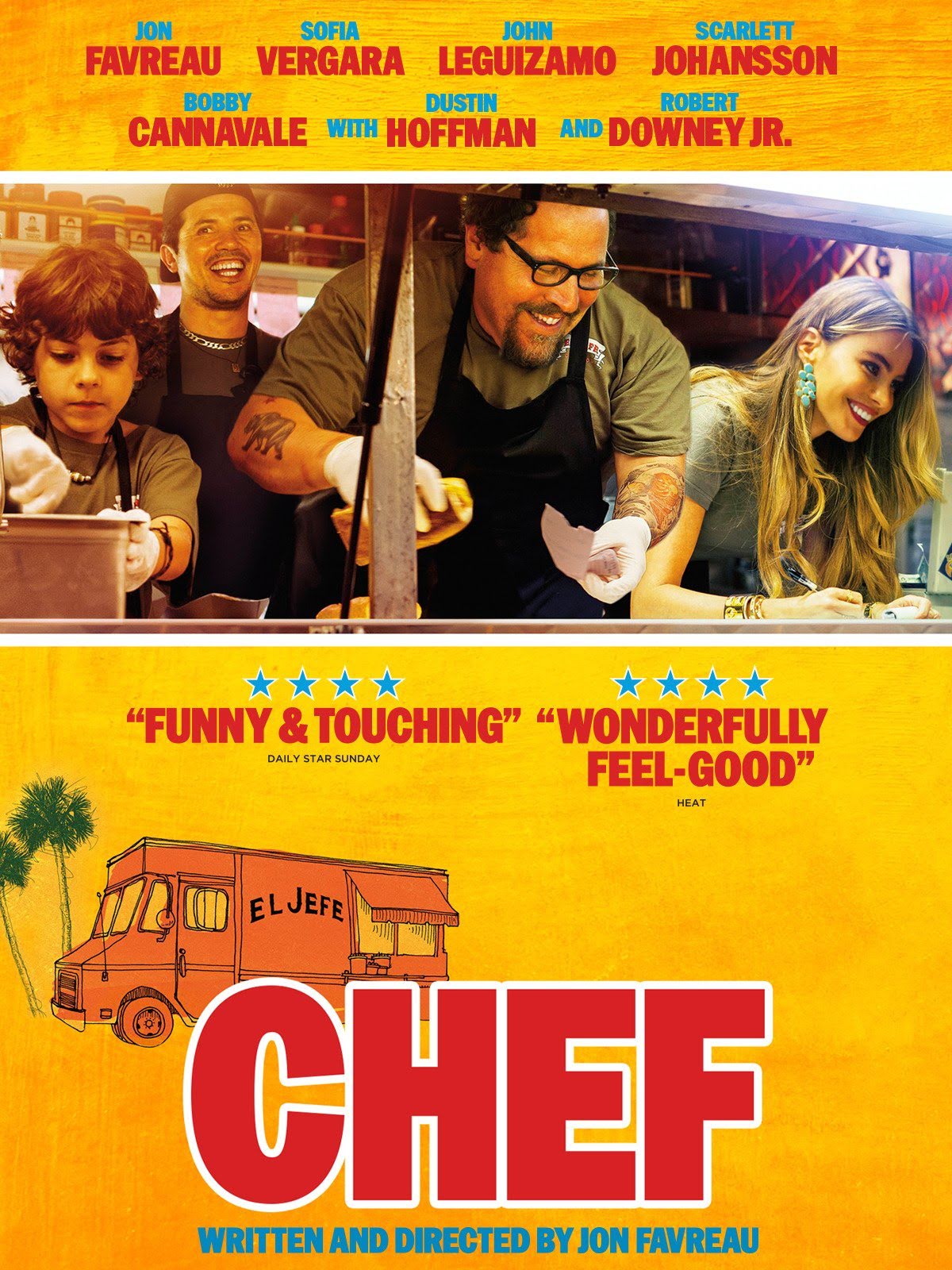 To say that I really enjoyed this movie would be an understatement. One of my favorite types of films is when big budget Hollywood stars make smaller feel good movies, and this one knocks it right out of the park!! Jon Favreau wrote, directed and stars in this film, and then you also have a terrific ensemble cast with names such as Scarlett Johansson, Sofia Vergara, Robert Downey Jr., John Leguizamo, Bobby Cannavale, Dustin Hoffman, and Oliver Platt, with cameo appearances by Russell Peters and Garry Shandling and Chefs Aaron Franklin, and Roy Choi, and a wonderful job done by young Emjay Anthony who plays Jon Favreaus son in the film.