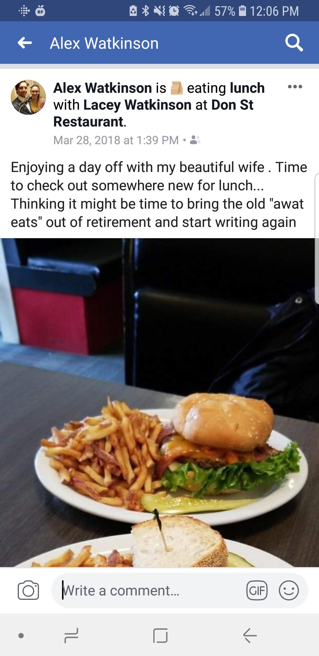 On March 28th, 2018, my wife and I enjoyed a quiet day together while the kids were in school. We decided to stop in to the Don Street Restaurant for lunch. When our waitress placed our incredible sandwiches down in front of us, I immediately reached for my phone. Not only did I want to take a picture of our lunches before we dove in, I also wanted to check us in on Facebook. The following caption was something that had been bouncing around in my head for quite some time. I thought I would just throw it out there into the universe. Honestly, you never know what might happen.