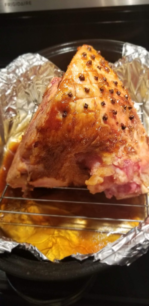 For large parties, I find this recipe is also great to make the day before.  I reserve the pan juices in a separate container and then warm them up in a sauce pan and baste the slices of ham with it and put it out on a serving tray. And for you breakfast people, any leftover ham is delicious fried up and served with some hash browns and eggs.