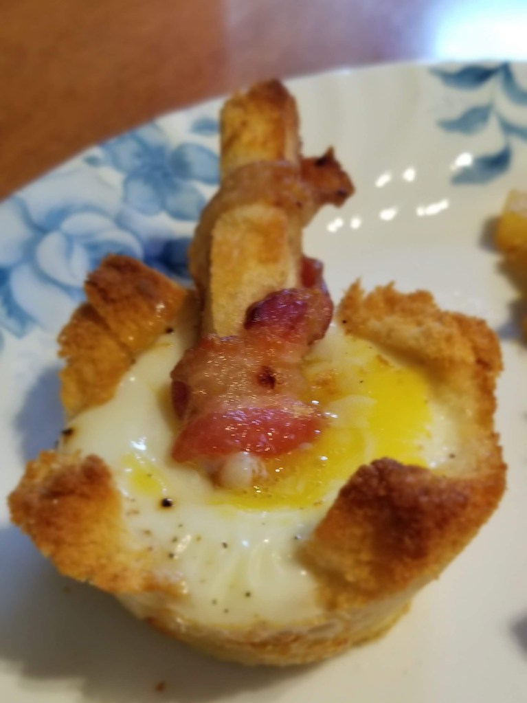 - Bake both the tray of bacon soldiers and the bread cups in the oven for 10 minutes