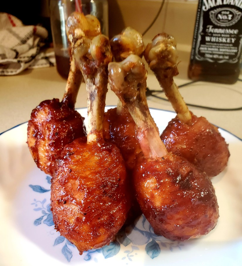 - Meanwhile, warm up the barbecue sauce in a small saucepan on the stove over low heat. If you want it to have that Louisiana kick, add in a few squirts of the hot sauce, to your taste. Once it starts to thin, turn down the heat to just keep it warm. If the sauce needs to be thinned, pour in a little bit of the butter used in the pan until it reaches a thickness that is thick enough to adhere to the drumsticks but not gluey.