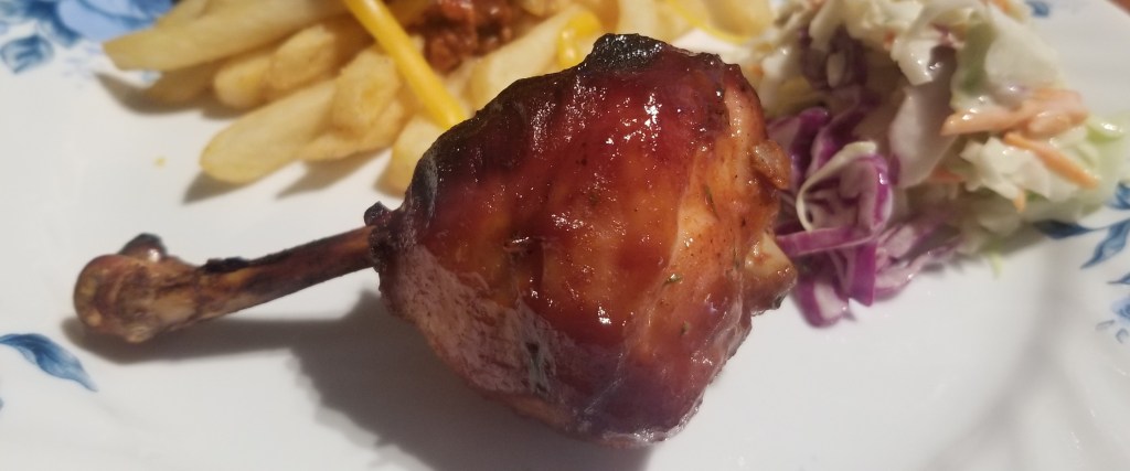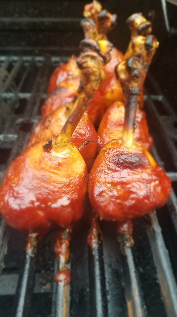 - Season the chicken legs with bbq seasoning and wrap the ends of each drumstick with aluminum foil