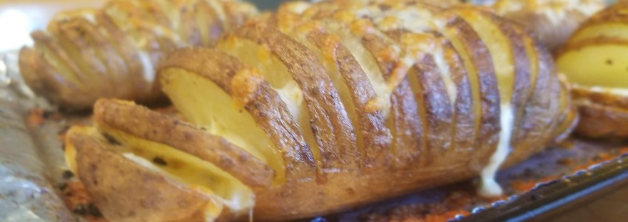 Cheesy Hasselback Potatoes. Before you can run you have to learn to walk. Try out this easy potato recipe! Once you have it mastered the sky is the limit for what you can add to them 😍 #awateats #foodie #blogger #Winnipeg #potato #cheese #hasselback